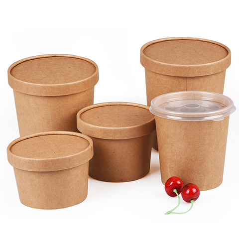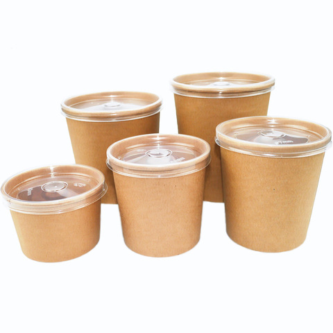 Caja de papel desechable con tapa, embalaje ecológico con logotipo impreso personalizado, color marrón