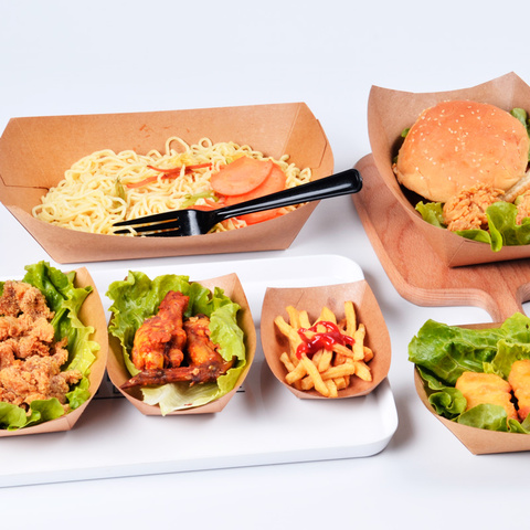 Caja de embalaje ecológica de papel marrón, vajilla de papel biodegradable